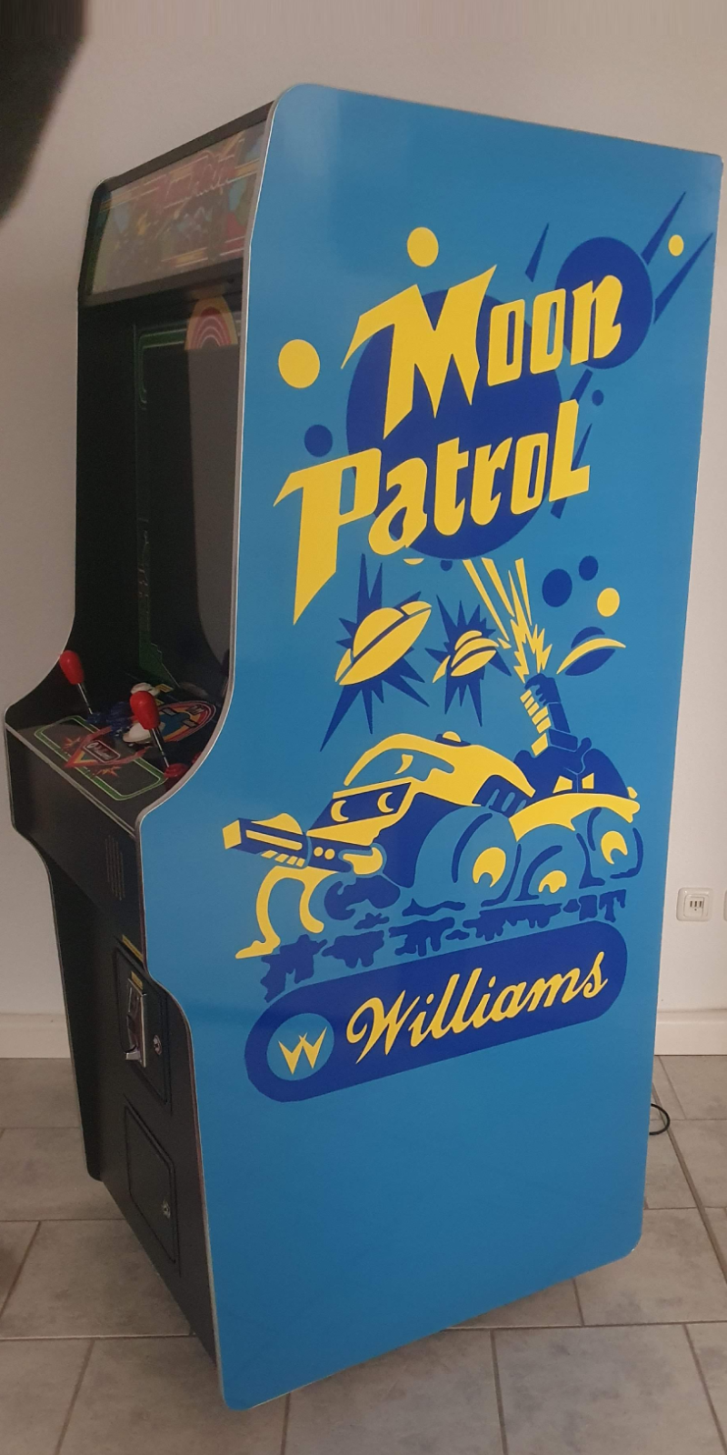 On the front 26" high resolution LCD monitor, 2 speakers built in (ca. 80 W) and coin slot.