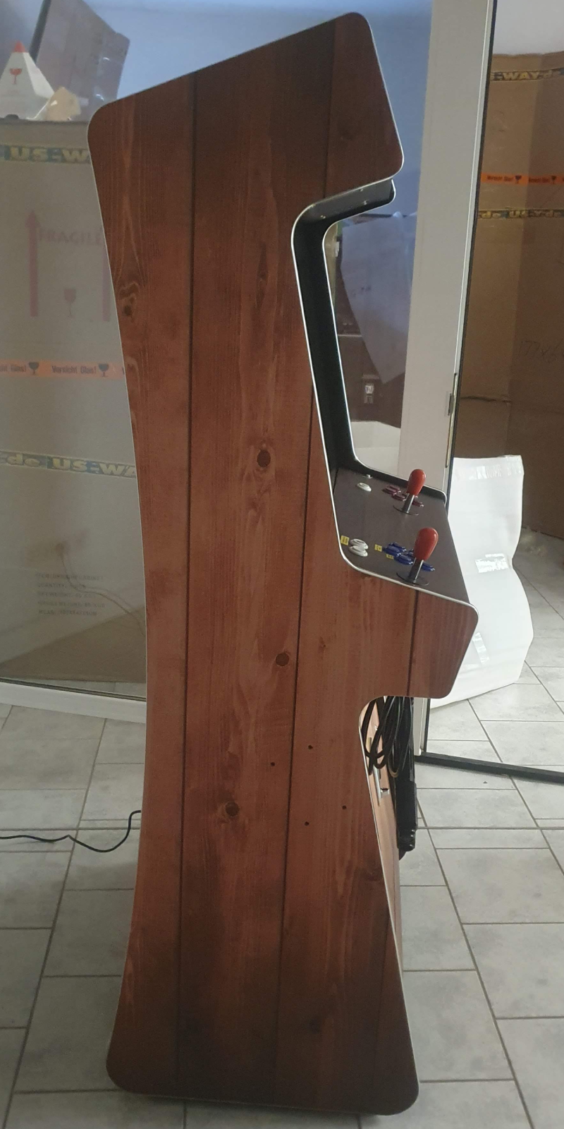 On the front 32" high resolution LCD monitor, 2 speakers built in (ca. 90 W) and coin slot.